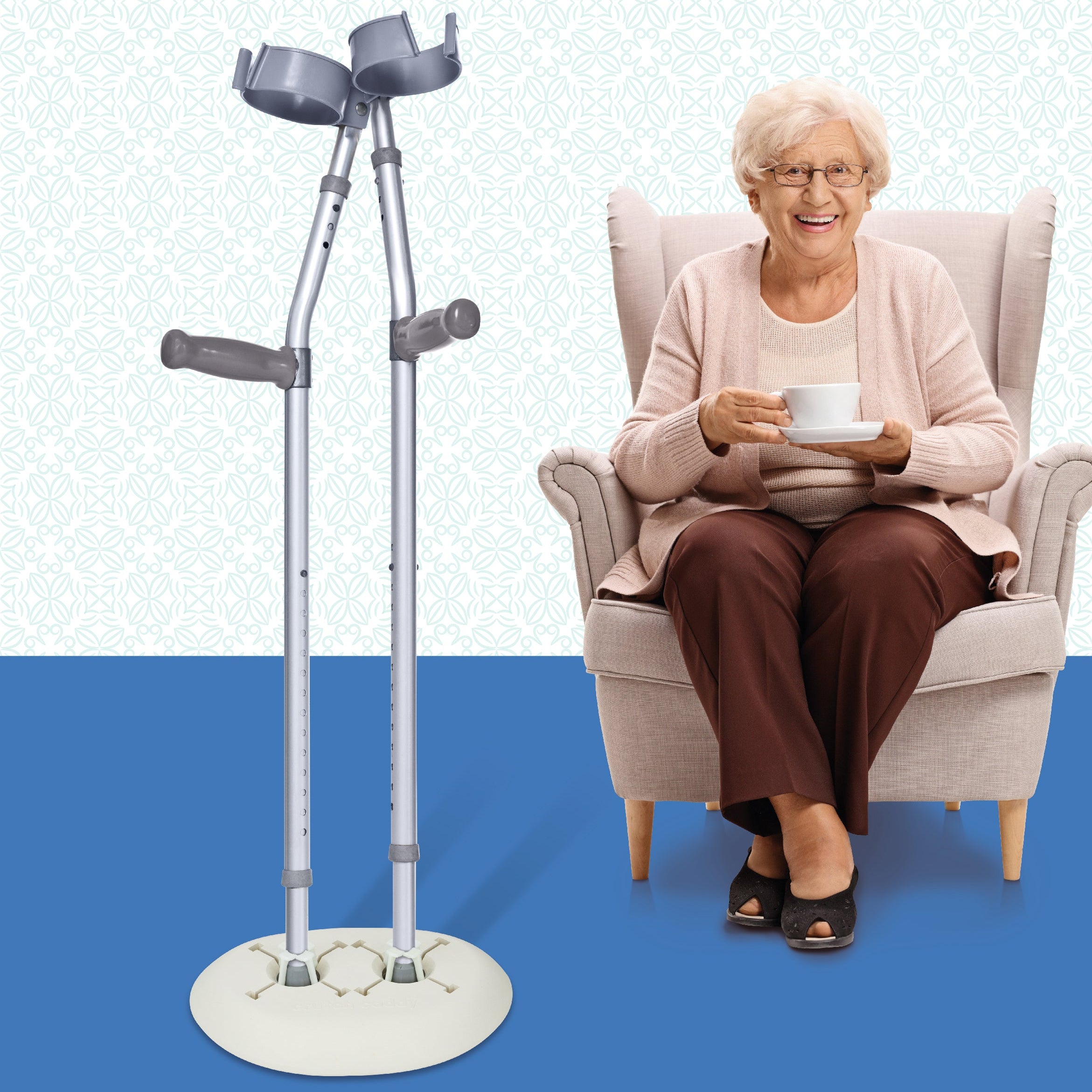 Keep your walking stick safe, upright and easy to reach with this practical Cane Caddy. Designed with secure sockets and locking arms, it holds your crutches firmly in place and releases them automatically when lifted so no bending or struggling required.