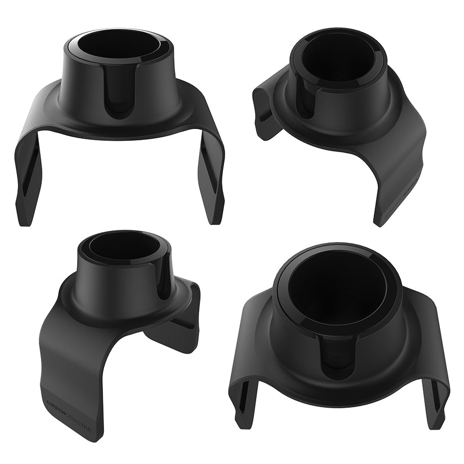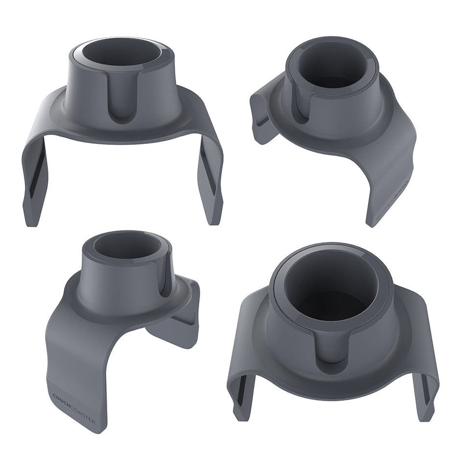 The CouchCoaster is a versatile drinks holder designed to keep drinks secure and within easy reach on sofas, armchairs and recliner chairs. Built with integrated iron weights and a non-slip tacky base, it stays firmly in place on both fabric and leather surfaces. It fits armrests at least 14 cm wide with flat or gently sloping sides and can also be positioned in alternative ways for added flexibility. Its ergonomic design supports most mugs, cups, cans, and glasses up to 9 cm wide, and includes an adaptor for smaller bottles and cans.