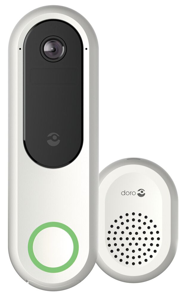 The Doro Hemma Doorbell is a smart, wireless video doorbell offering clear video and sound. It provides instant video calls to your smartphone or tablet, enabling easy communication with visitors without having to get up from your chair. Equipped with a wide-angle lens, night vision, and a loud chime, it ensures you can see and hear visitors at all times.