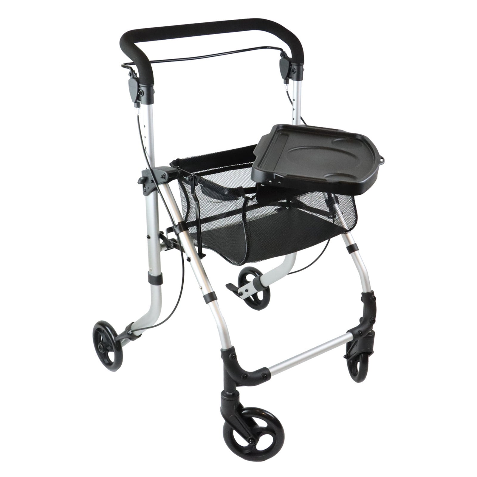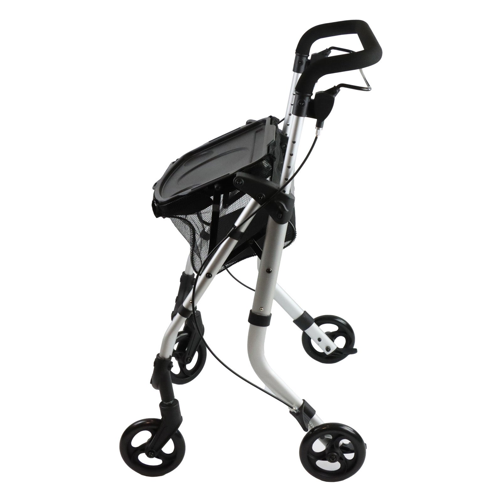 For added everyday convenience, the Indoor Rollator features a simple folding mechanism, allowing it to be folded away quickly for easy storage when not in use. A removable tray is also included, ideal for carrying drinks, meals or small household items. A practical mesh storage bag is also included, providing a handy space for keeping personal belongings close at hand.