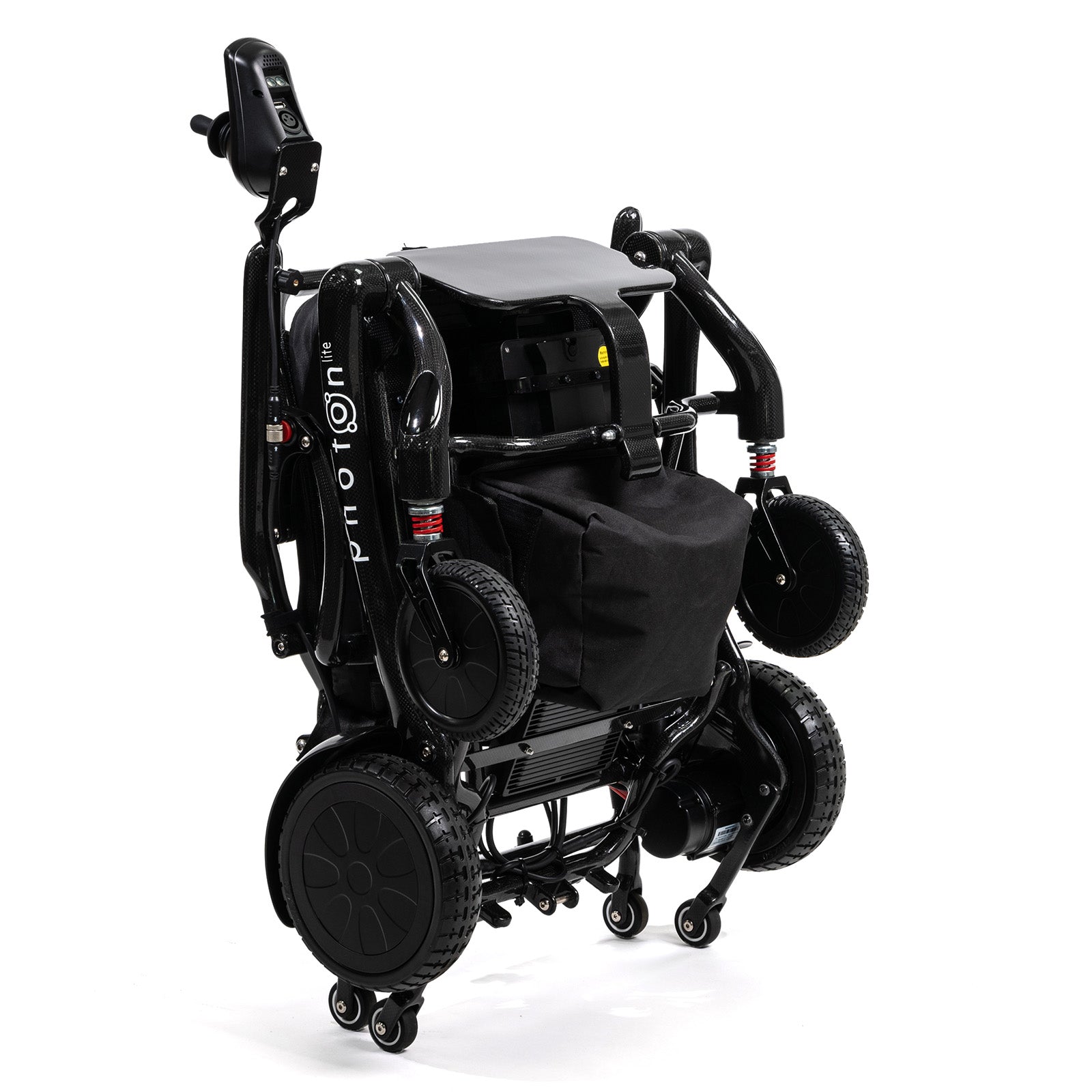 The Photon Lite is a compact carbon fibre powerchair designed with travel in mind. With a carry weight of just 13.9kg, it’s impressively lightweight yet built to be strong and dependable. The Photon Lite boasts a 12-mile range and supports users up to 140kg, offering everyday comfort without compromise. Its clean, minimalist design folds easily, making it simple to lift, store and transport which makes this powerchair ideal for days out, and daily life on the go.
