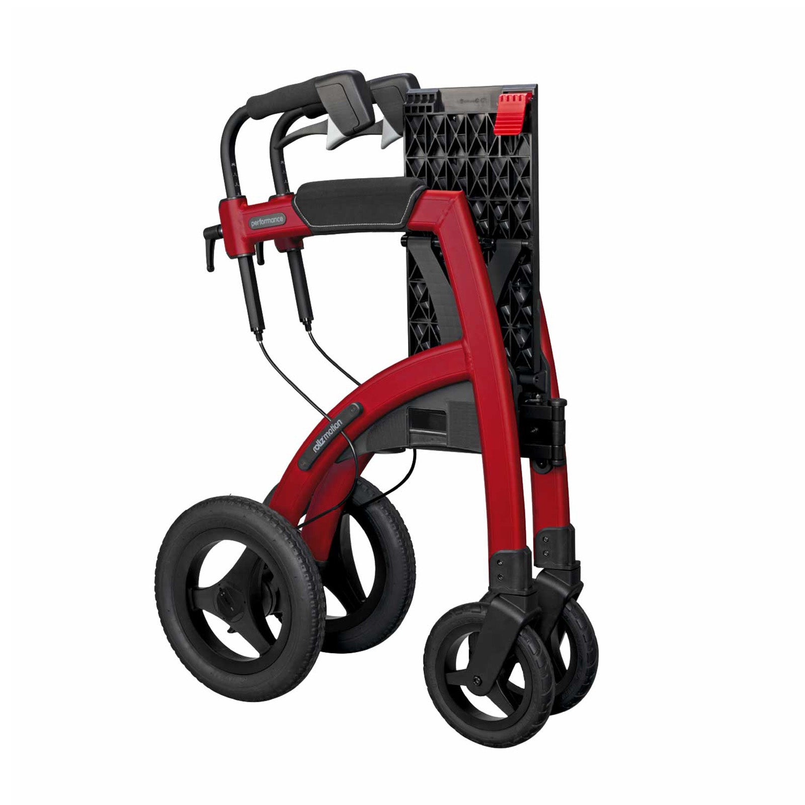 The Rollz Motion Performance is a high quality lightweight modern all-terrain rollator that transforms into a wheelchair at the flick of a wrist. The pneumatic tyres ensure a comfortable ride even on bumpy roads and uneven footpaths. It features a soft cushioned seat and backrest for added comfort and extra thick padding on the armrests. It also has ergonomically shaped handles that help dampen vibrations and adjustable footrests. Folds to a compact size to allow for easy storage and transportation and will easily fit into the boot of your car.