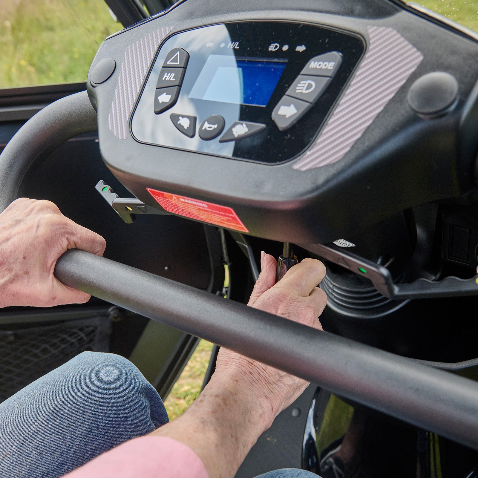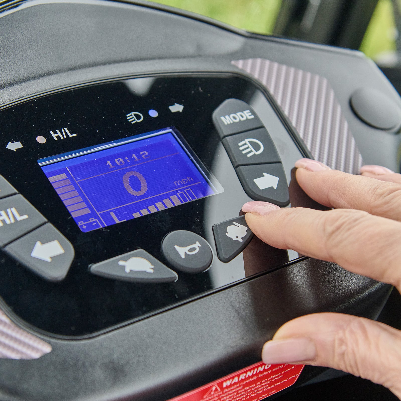 The scooter has delta handlebars with a digital display to make day today use more comfortable for users with reduced grip strength.