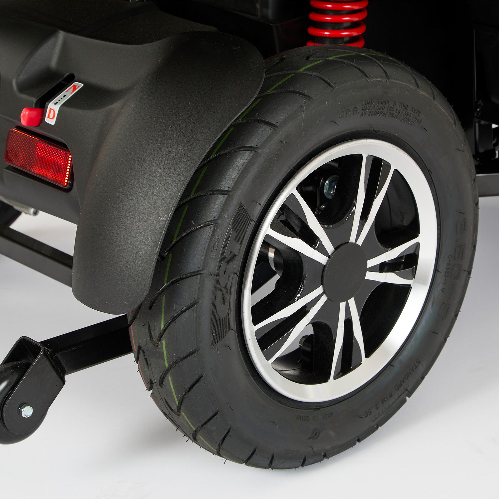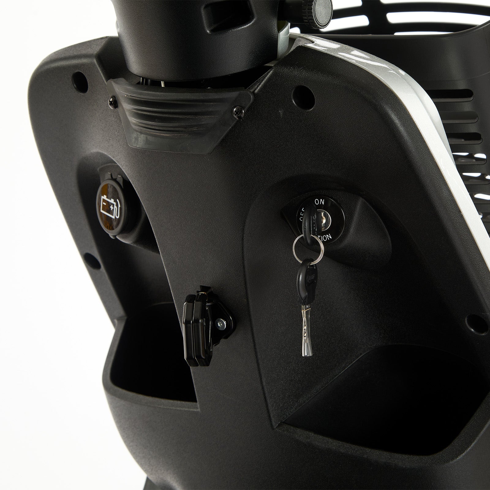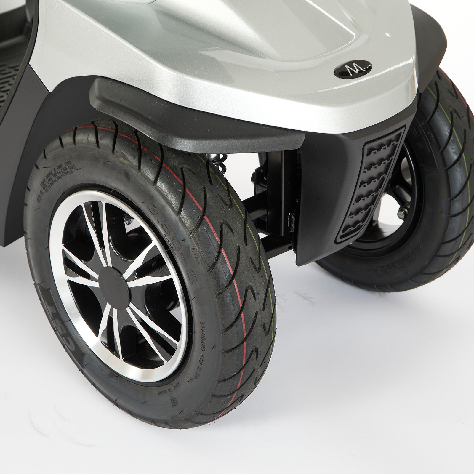 Comfort is a key feature, with a fully adjustable captain’s seat, padded armrests, headrest and swivel function for easy access. An adjustable tiller and generous legroom allow users to tailor the driving position, while full suspension and pneumatic tyres ensure a smooth, stable ride over uneven surfaces.