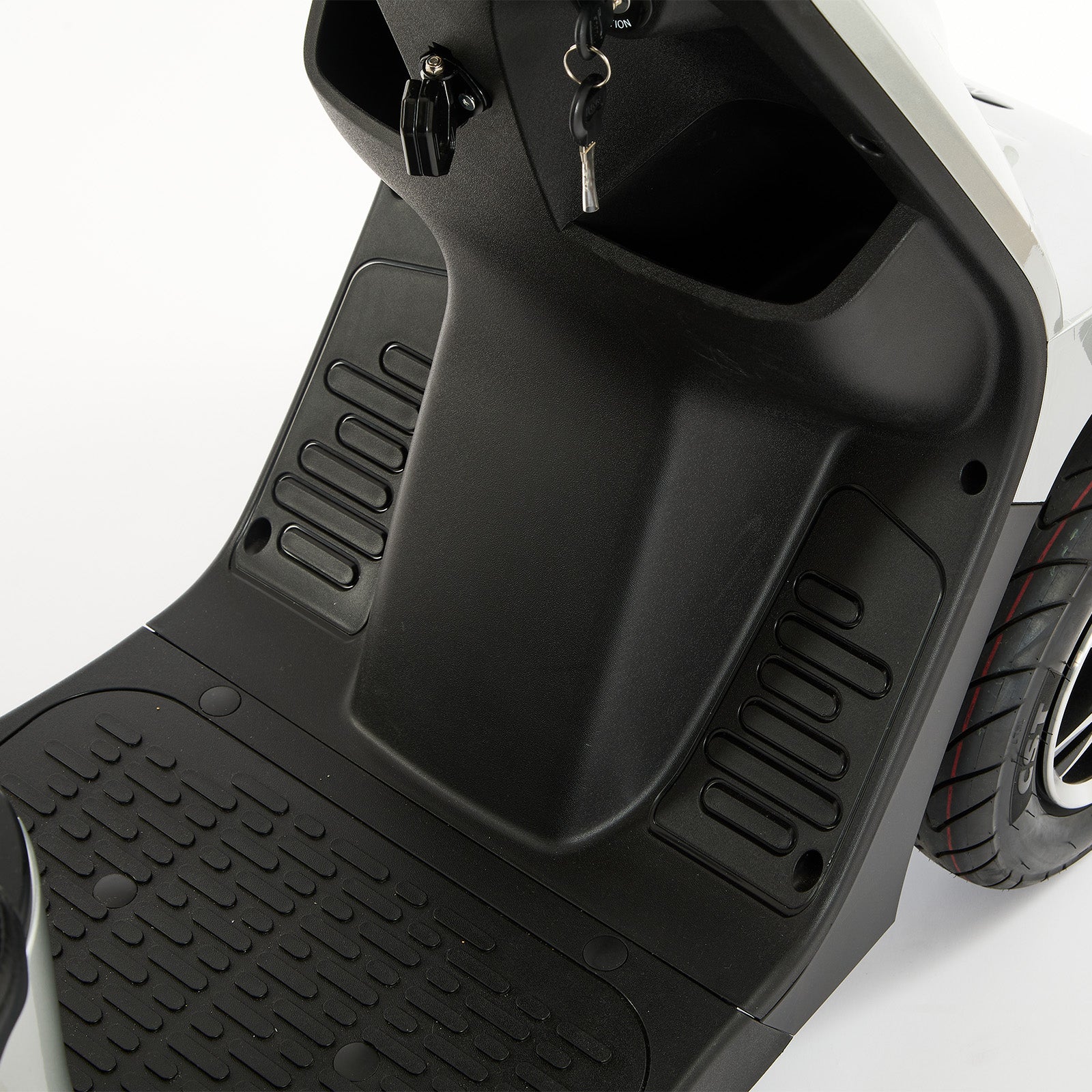 An optional canopy with vinyl sides is available making this scooter suitable for year-round use.
